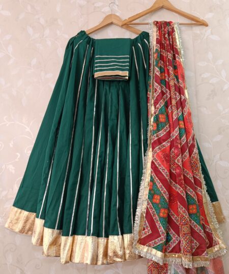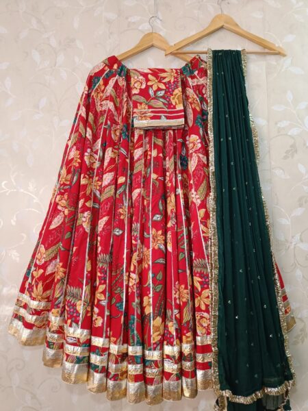 Lehenga Work : Embossed Design With Gota Patti Lace Touch Up