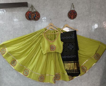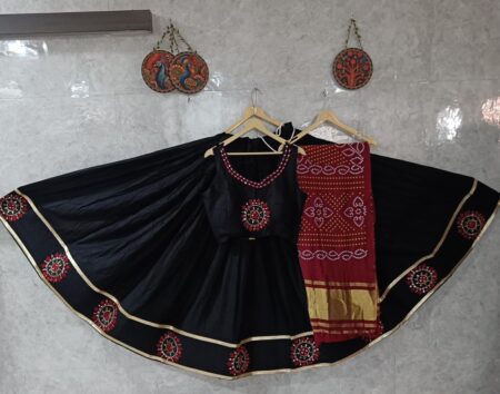 Lehenga Work : Patola and paithni Print with Mirror Work Gamthi Border and Paper Mirror on Daaman