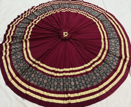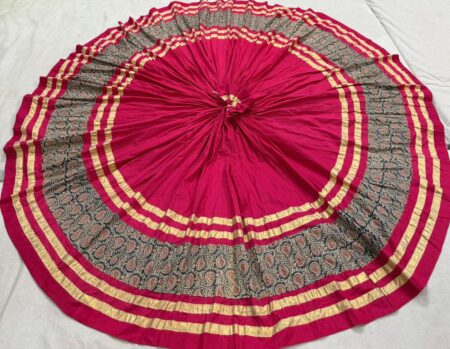 Chaniya Length – 41Plain Skirt With Ajrakh Border With Heavy Four Golden Lace