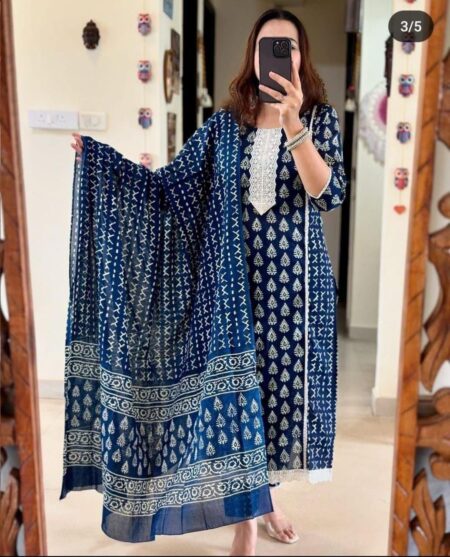 Women’s printed cotton kurta & plazo pant or dupatta setWork -Beautiful hand work work on yoke & Bazu