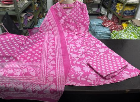 Cotton full flair anarkali kurti with pant and dupatta setsFabric _ premium cotton 60*60 super quality