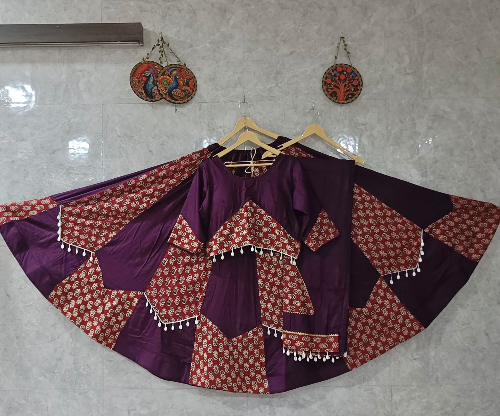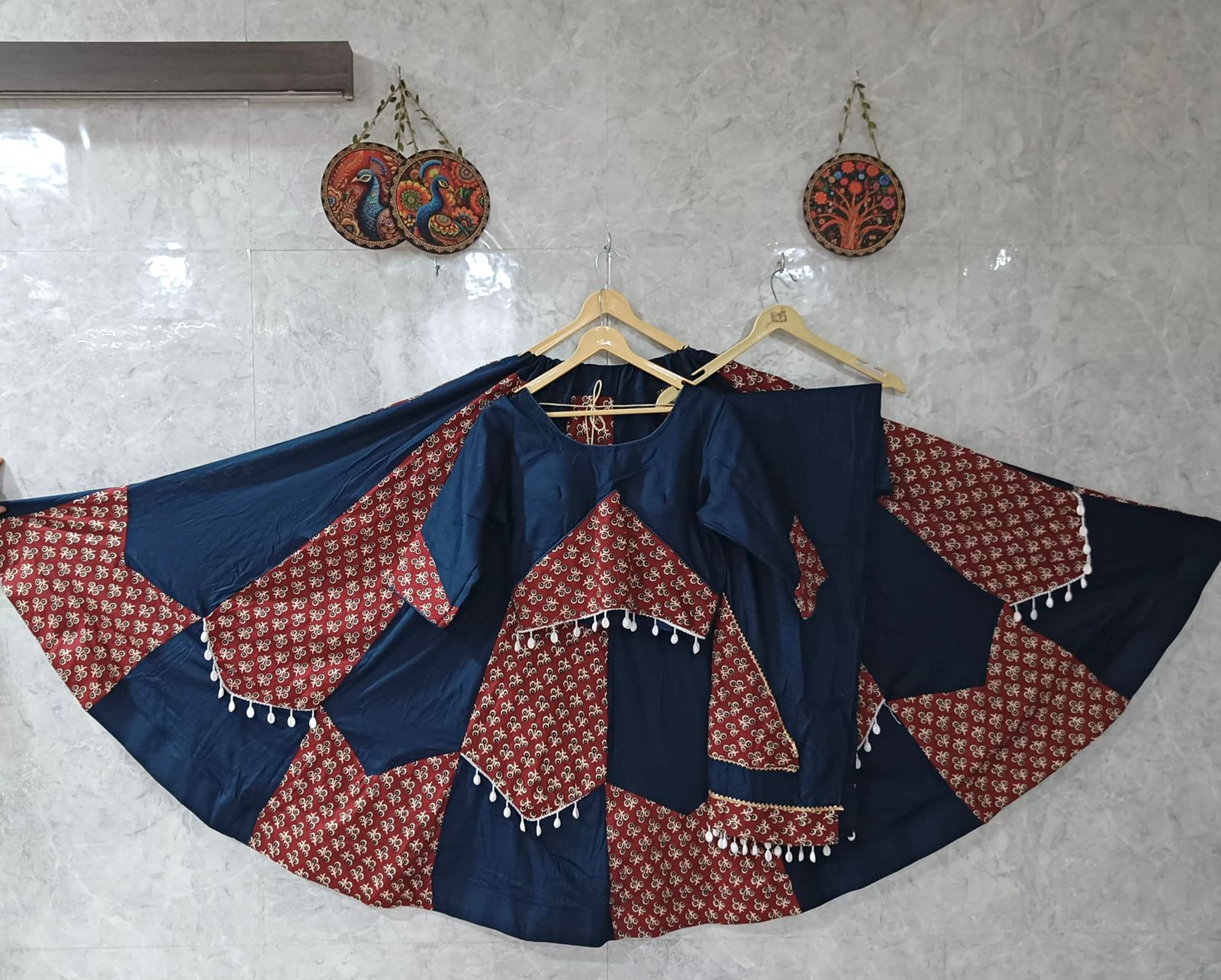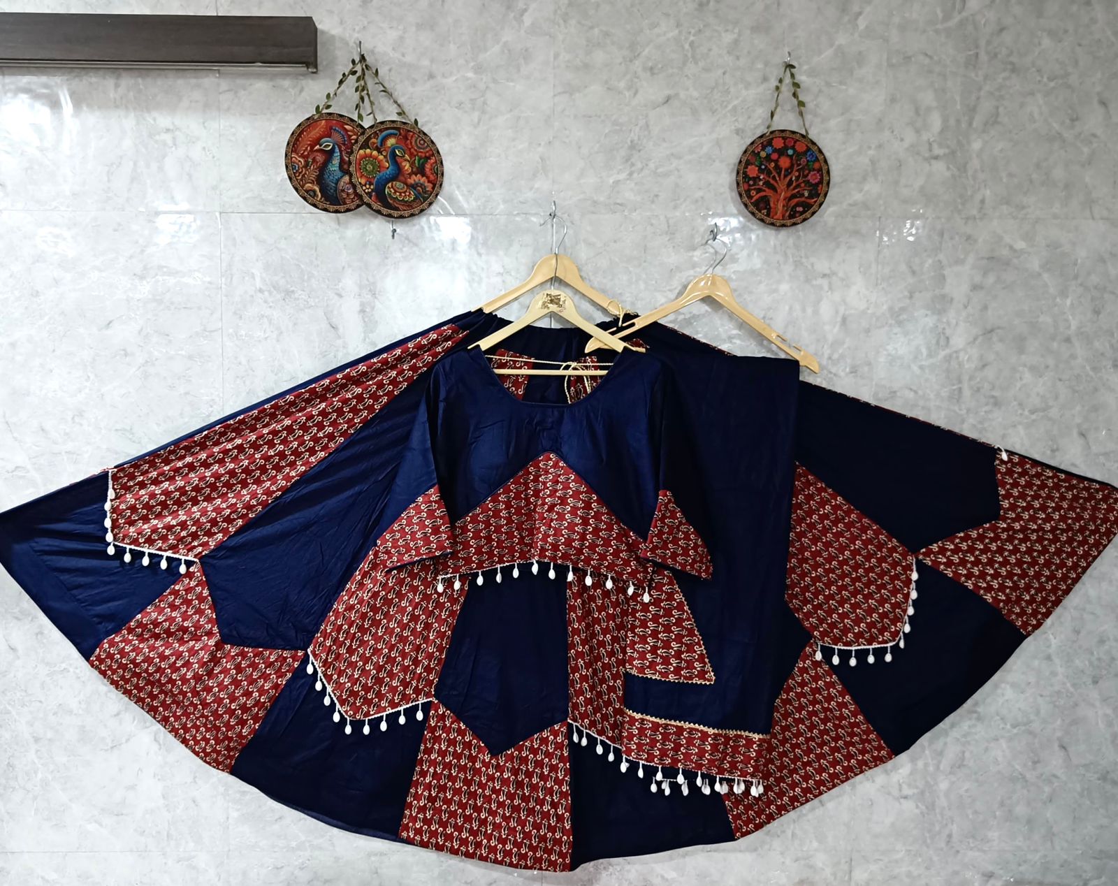 Introducing our Pure Cotton Special Designed Chaniya Choli, adorned that reflects the sparkle of your Garba nights. Crafted with care and elegance to make you stand out in every circle!