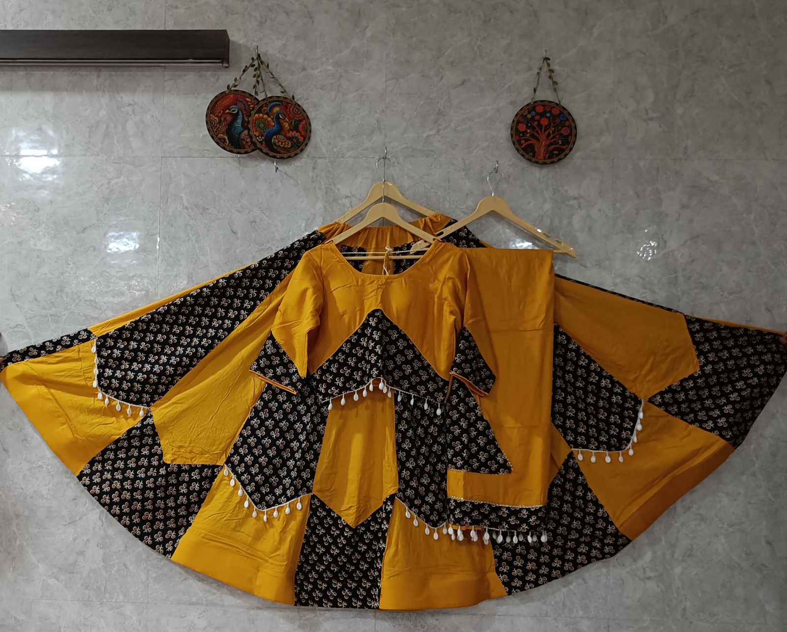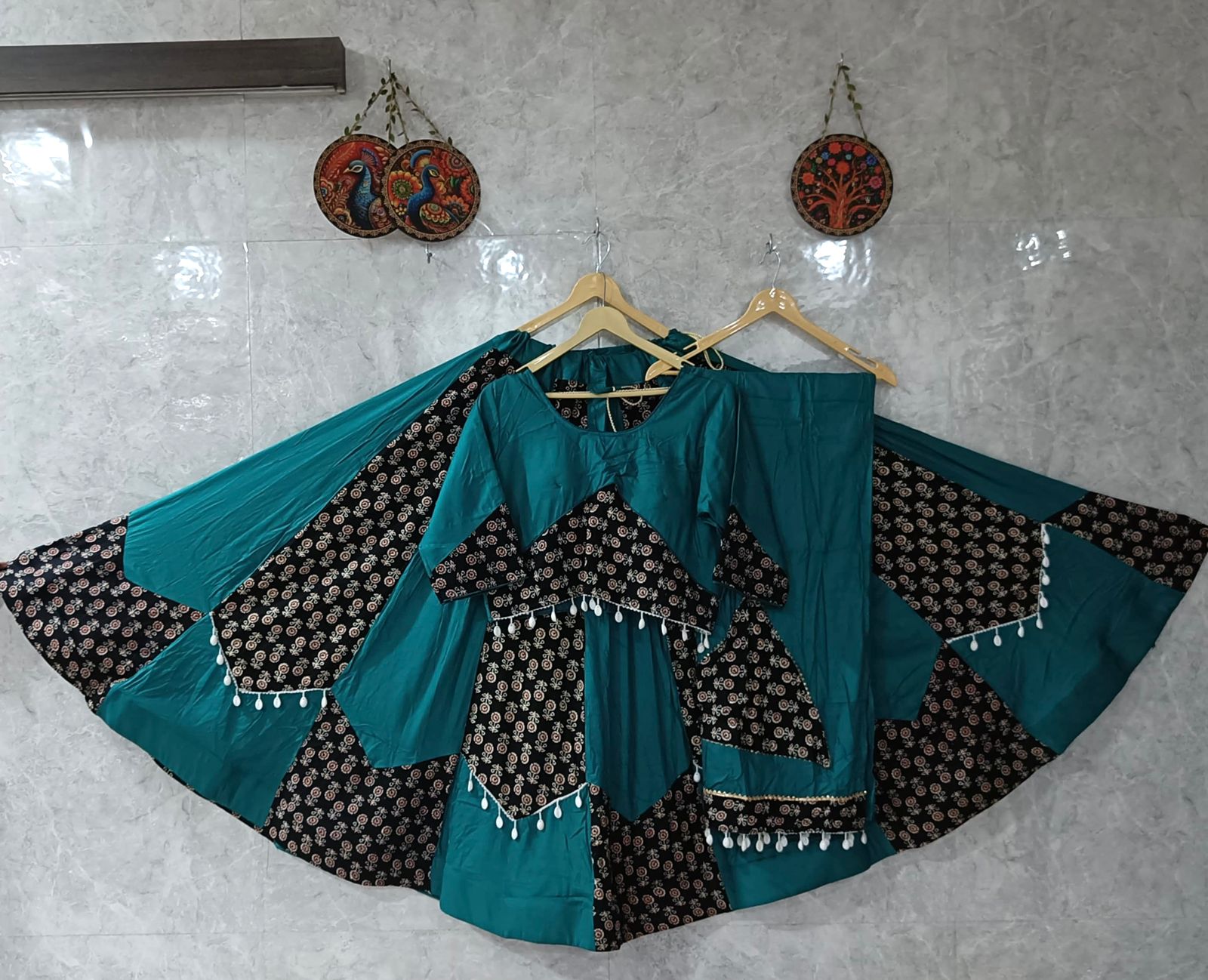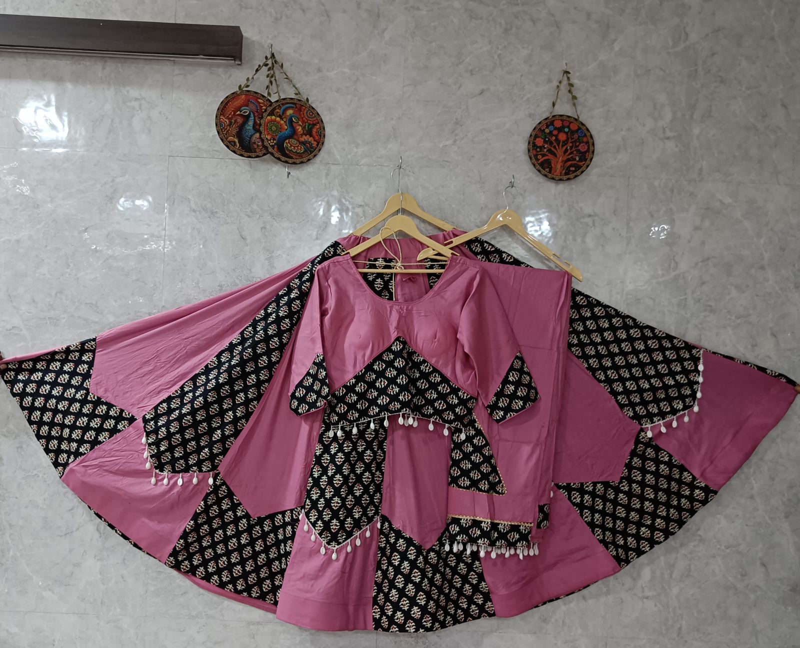 Introducing our Pure Cotton Special Designed Chaniya Choli, adorned that reflects the sparkle of your Garba nights. Crafted with care and elegance to make you stand out in every circle!