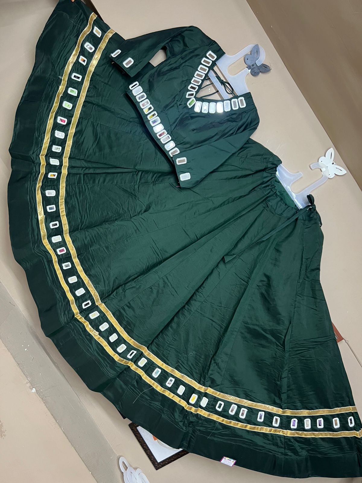 Lehenga Work : Patola and paithni Print with Mirror Work Gamthi Border and Paper Mirror on Daaman