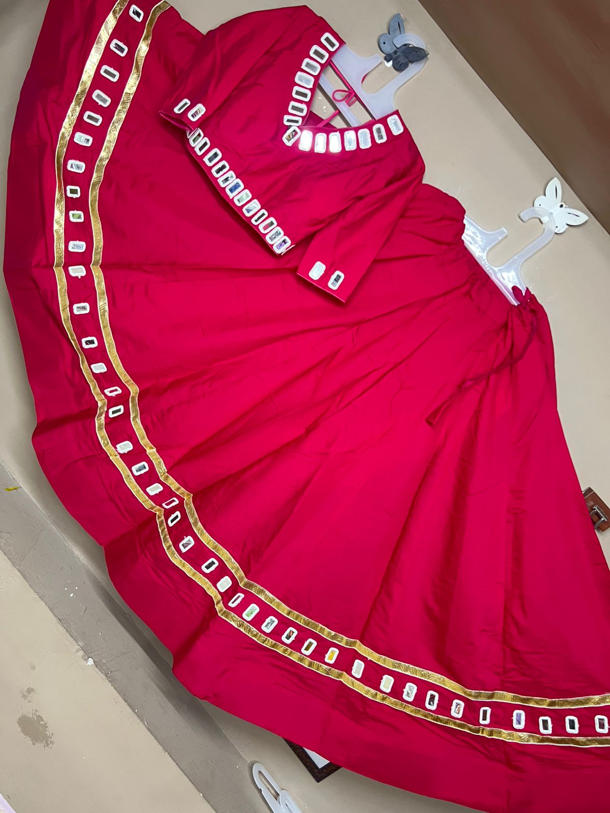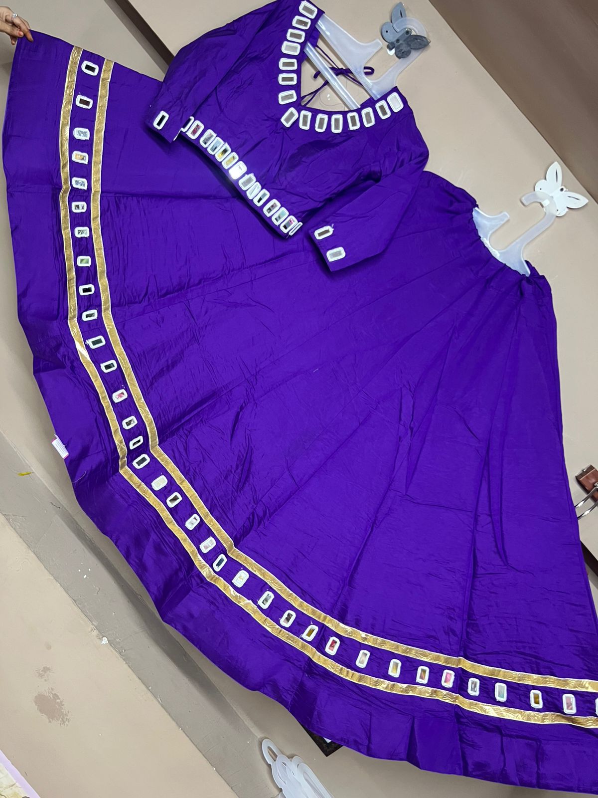 Introducing our Pure Cotton Special Designed Chaniya Choli, adorned that reflects the sparkle of your Garba nights. Crafted with care and elegance to make you stand out in every circle!