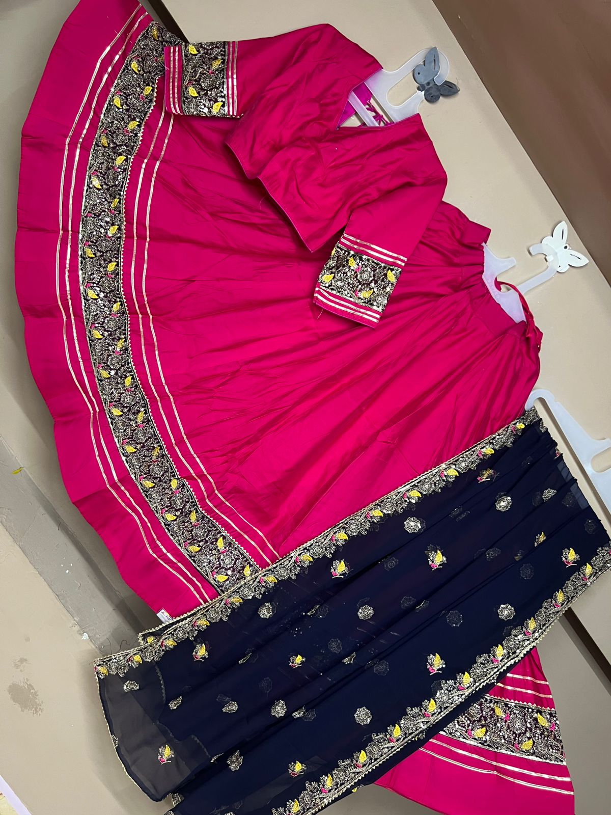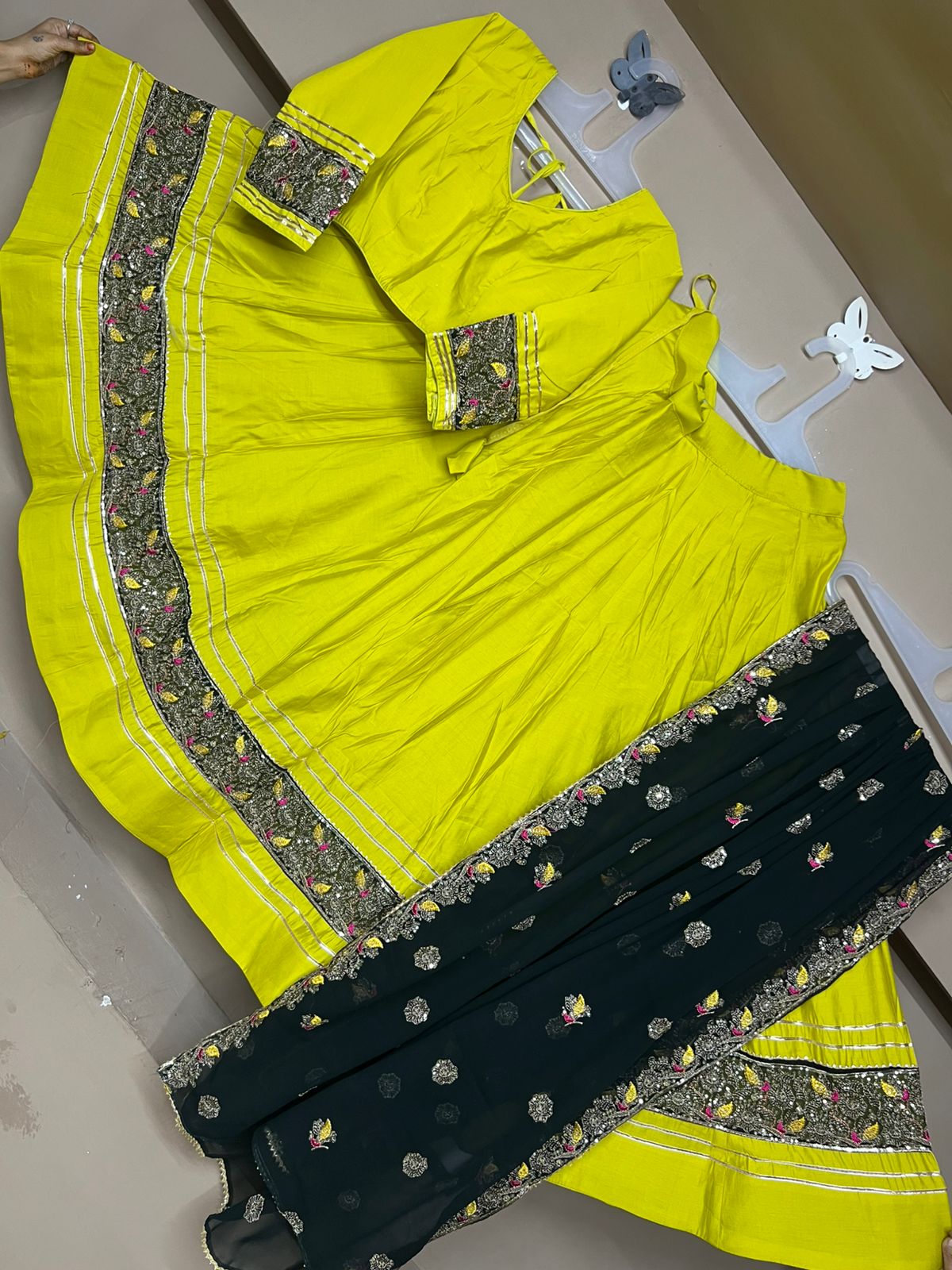 👉🏻 Fabrics & Work :- Laheriya Print work with kutchi patchework in Faux Georgette.
