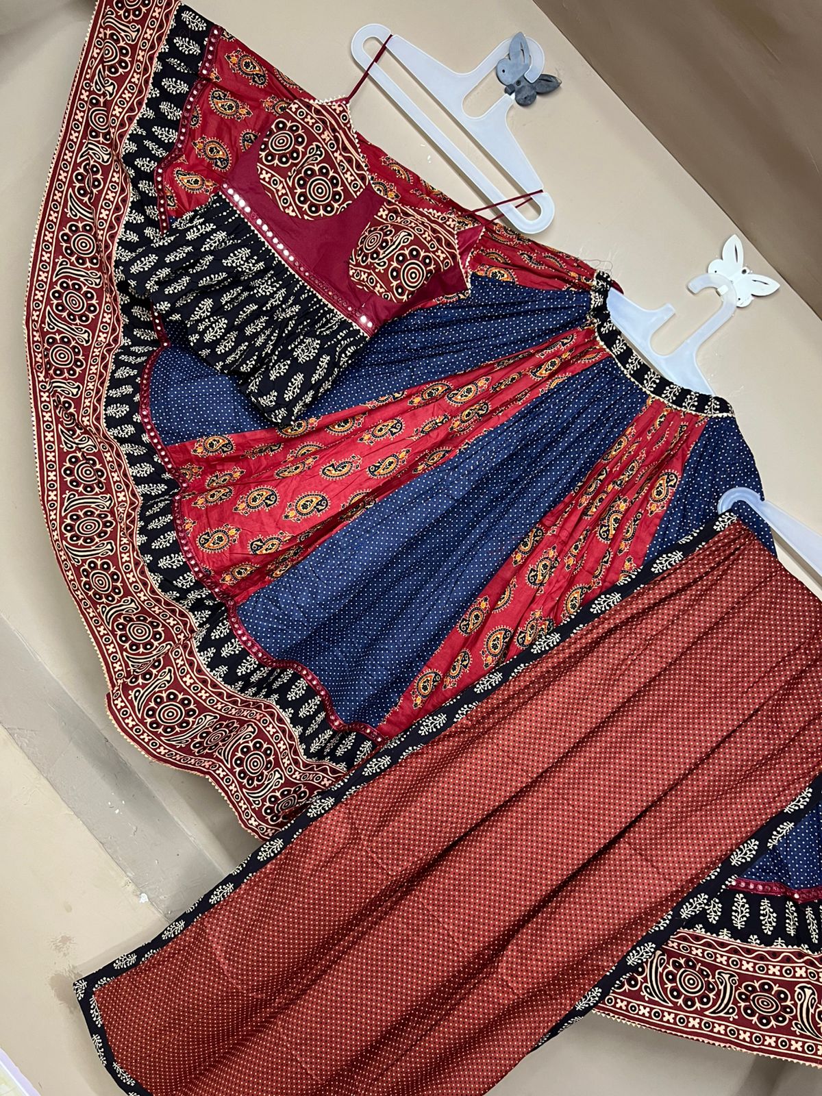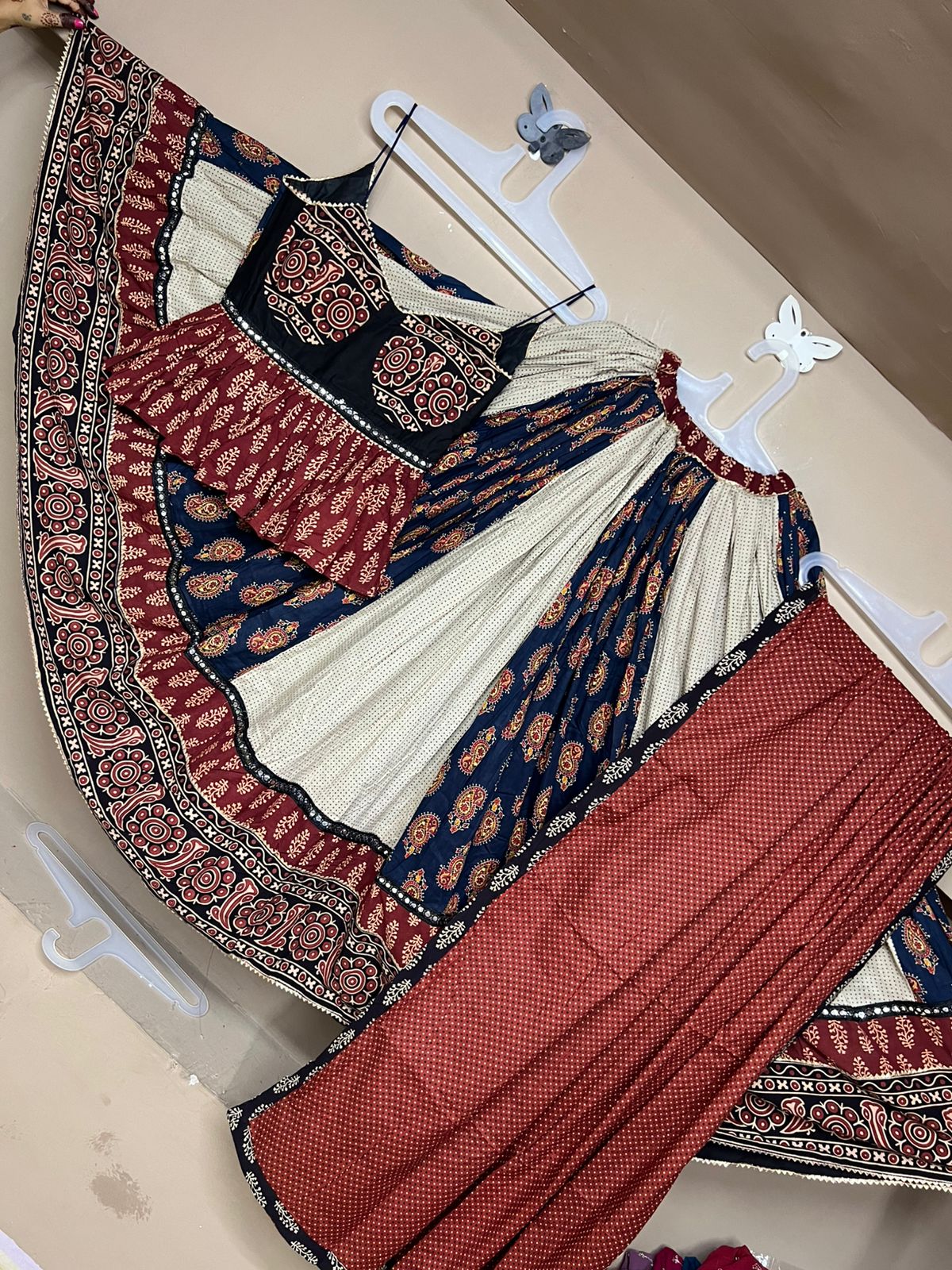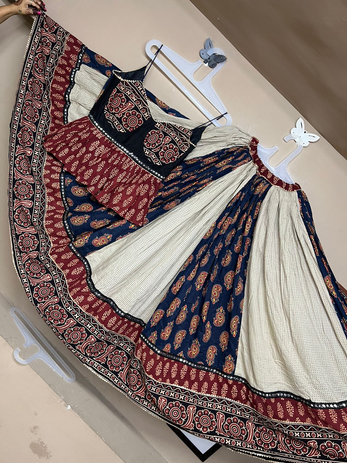 Designer Reyon Cotton Fabric With Heavy Ajrakh and Vintage Print Different Patches Premium Chaniya Choli
