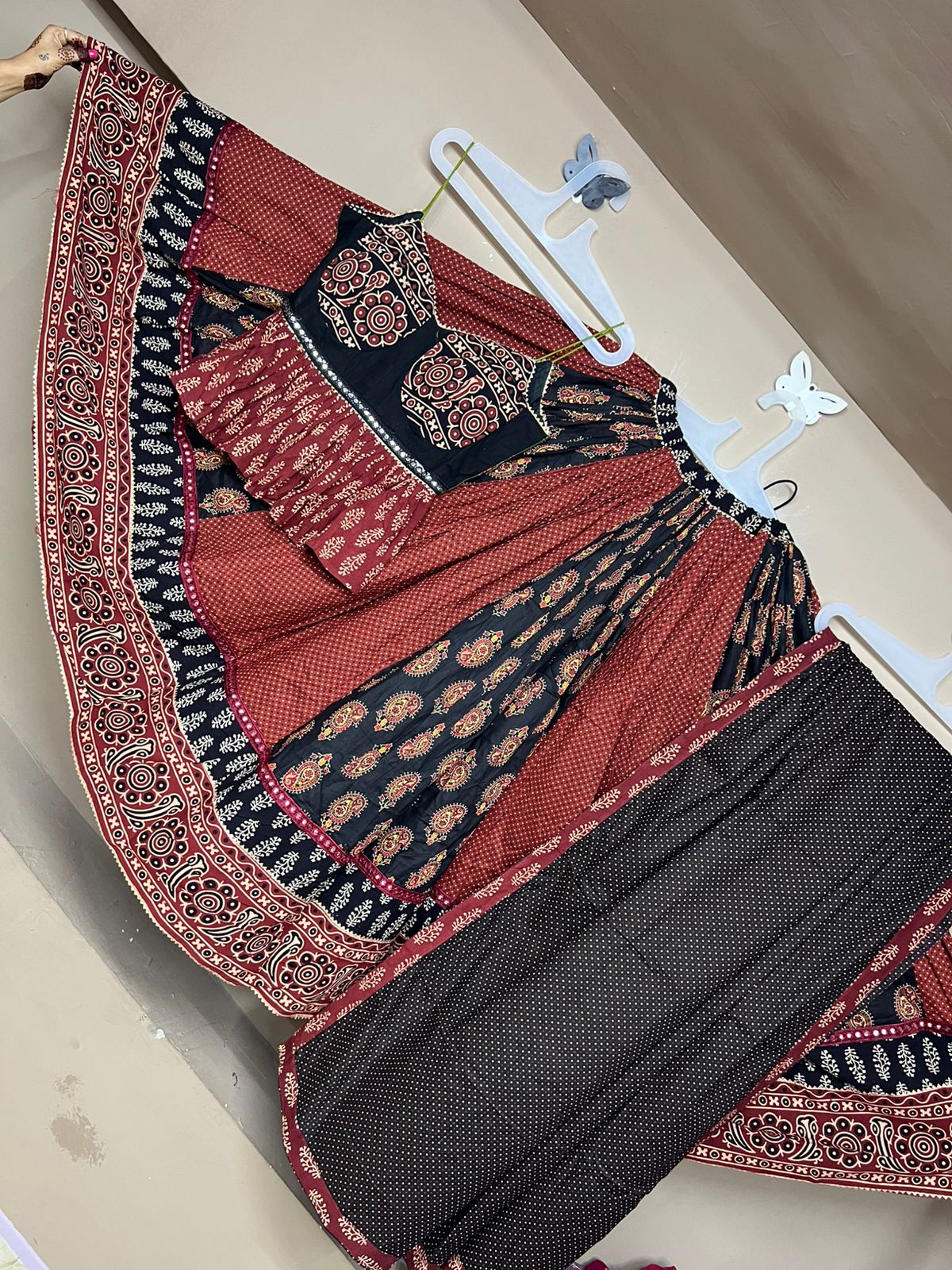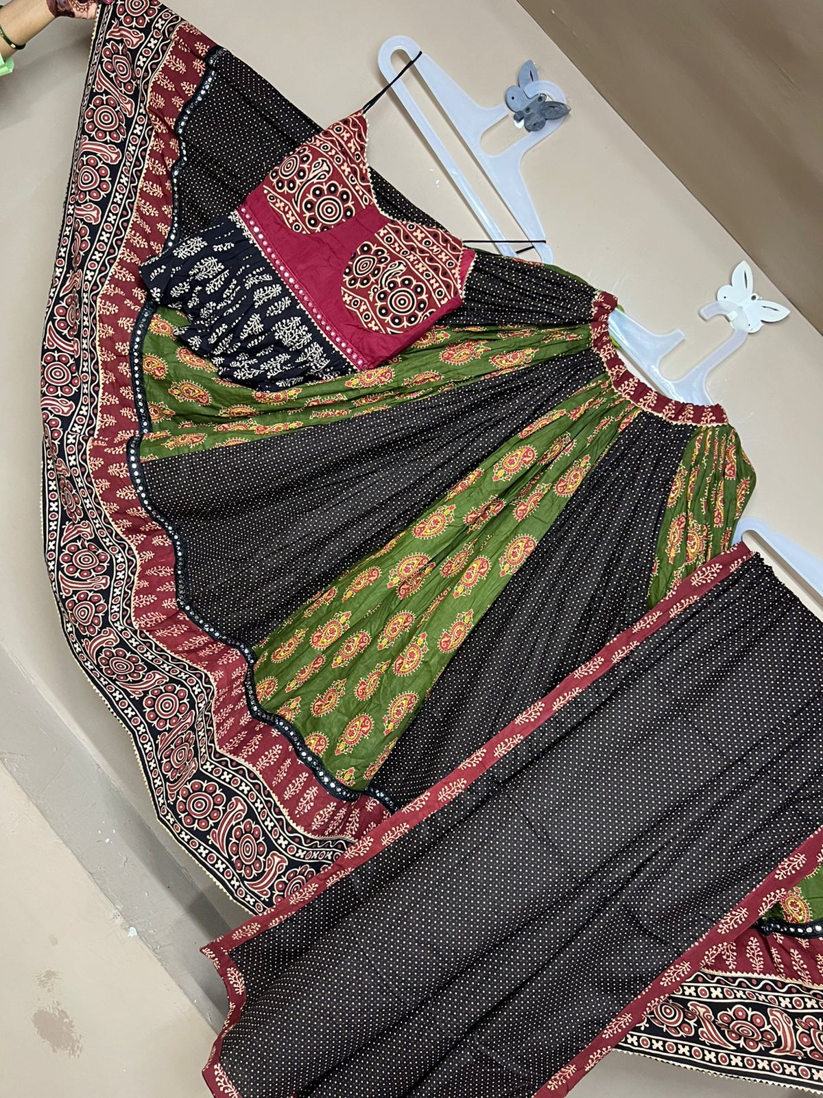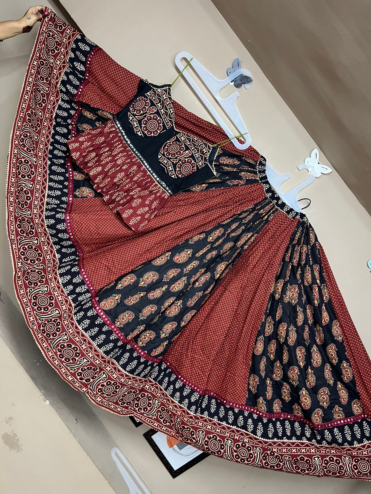 Designer Reyon Cotton Fabric With Heavy Ajrakh and Vintage Print Different Patches Premium Chaniya Choli