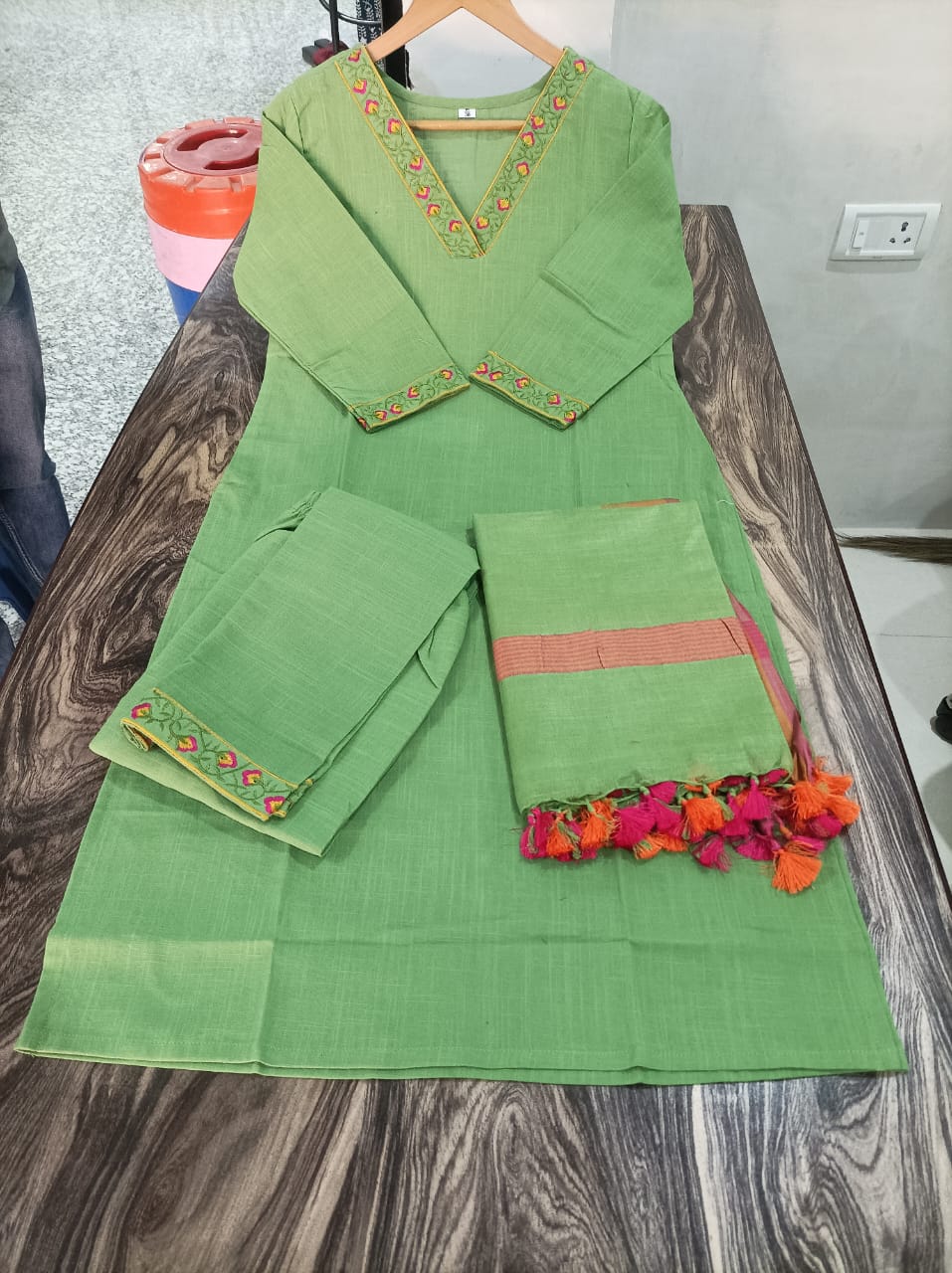 Febric – Kurti mul chanderi in side aatich lining with cotton pant and dupatta chanderi with tasal