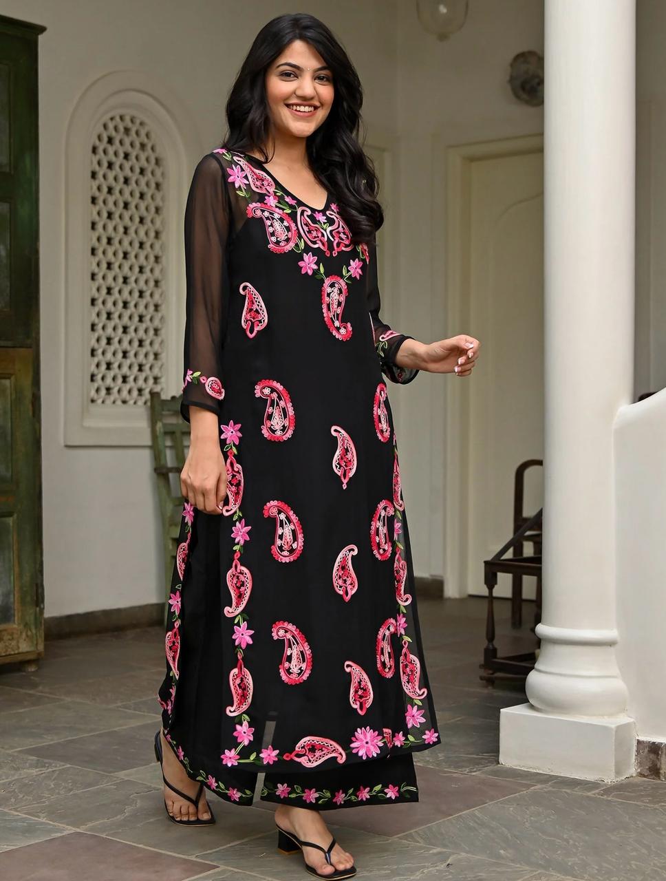 🥻 Top :- Georgette With Beautiful Multi Embroidery Work And Full Inner Micro Silk Crepe