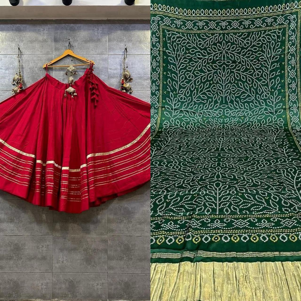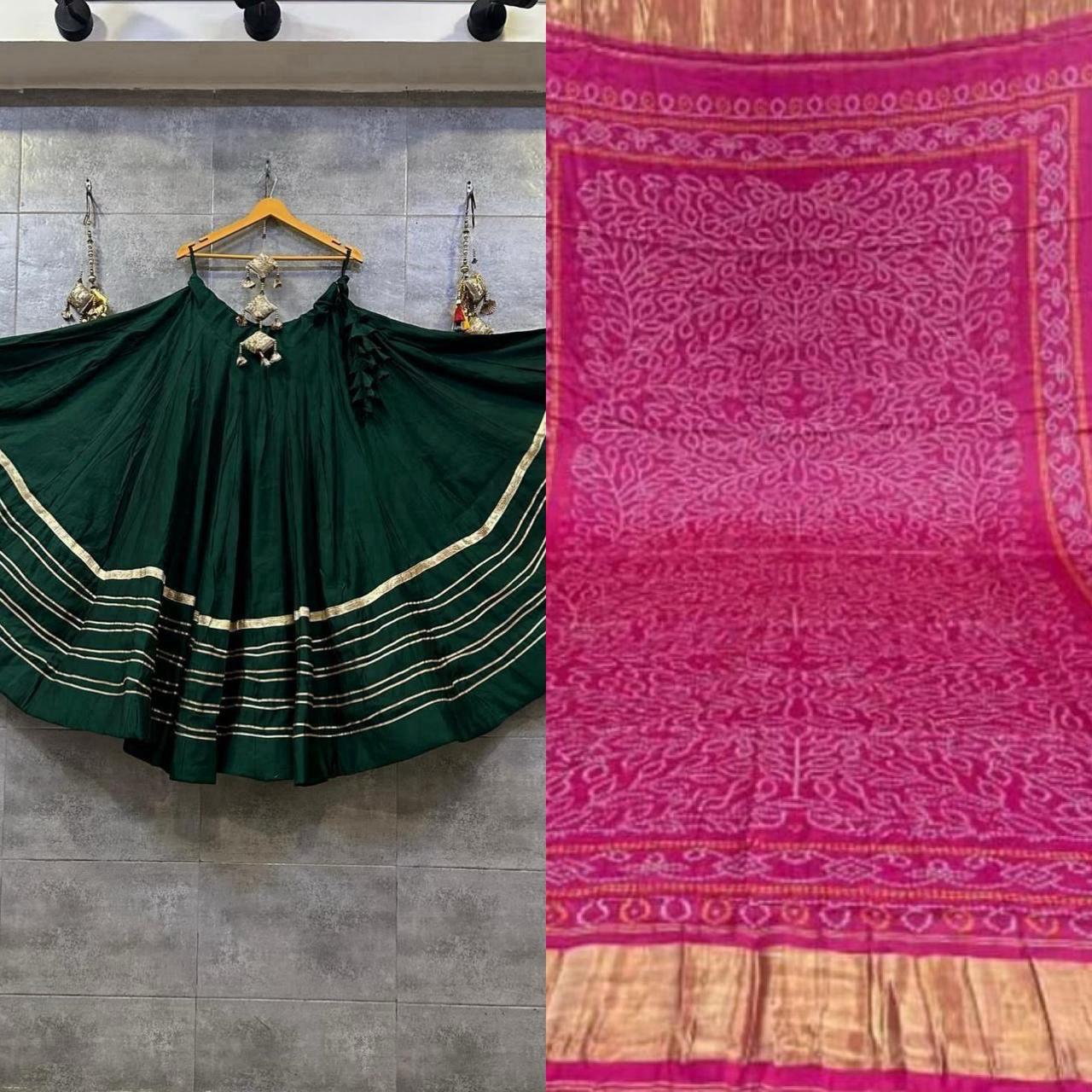 Lehenga Work : Patola and paithni Print with Mirror Work Gamthi Border and Paper Mirror on Daaman